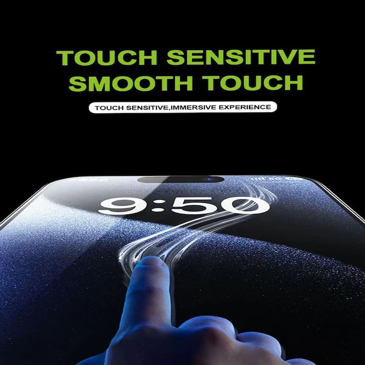 Aceasta folie sticla protectie telefon acopera iPhone-ul, asigurandu-va ca va simtiti ca si cum nu exista nimic pe ecranul iPhone-ului. Dispunand de o acoperire fina oleofoba, rezista eficient la zgarieturi, ulei si amprentele digitale, pastrand camera si senzorii in stare perfecta. Bucurati-va de aceeasi sensibilitate la atingere, senzatie si raspuns pe iPhone ca si pe ecranul original.
