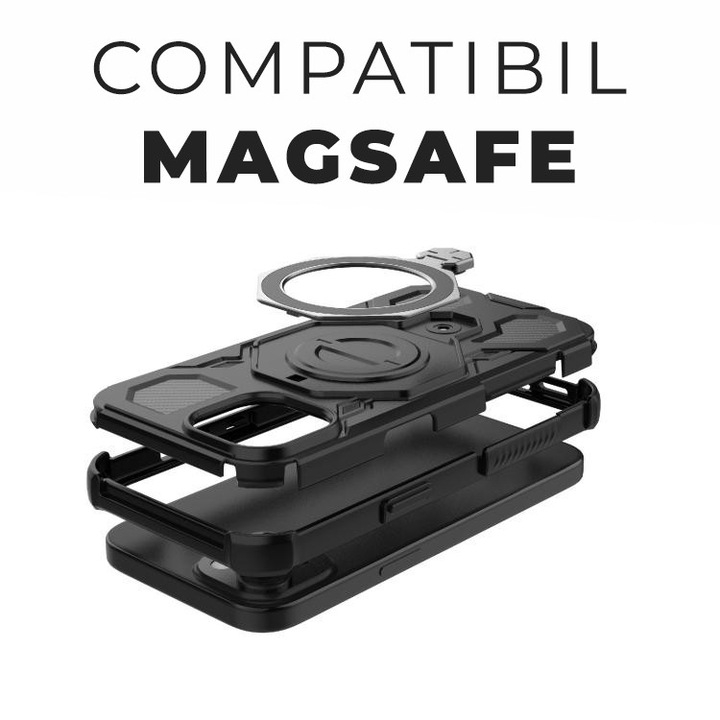 • Modelul Carbon Shield integreaza un element central din aliaj metalic, compatibil cu sistemele de prindere magnetice pentru autovehicule.