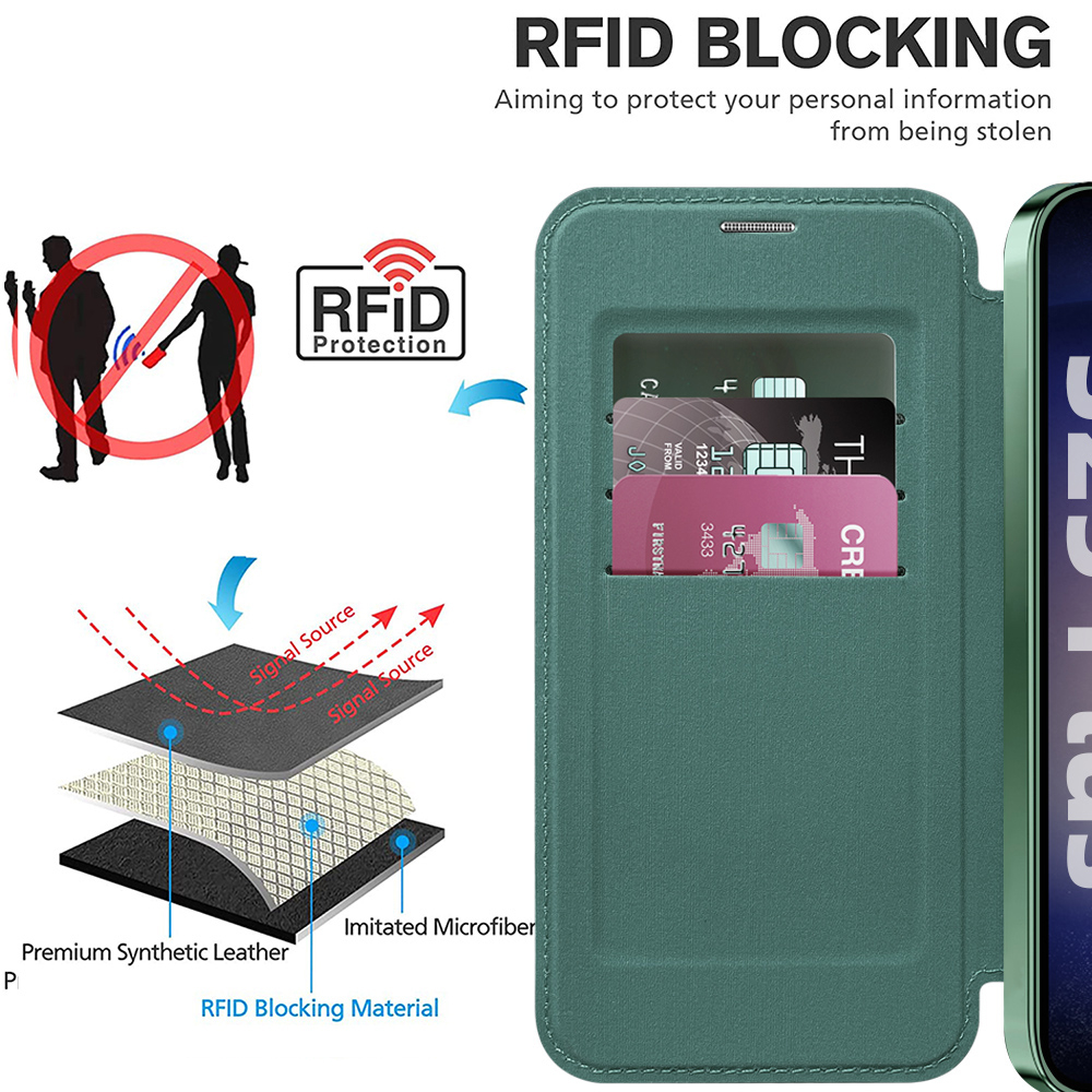 Husa SmartMag tip Carte- Samsung Galaxy S25 - Green, Verde